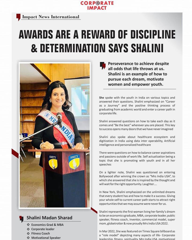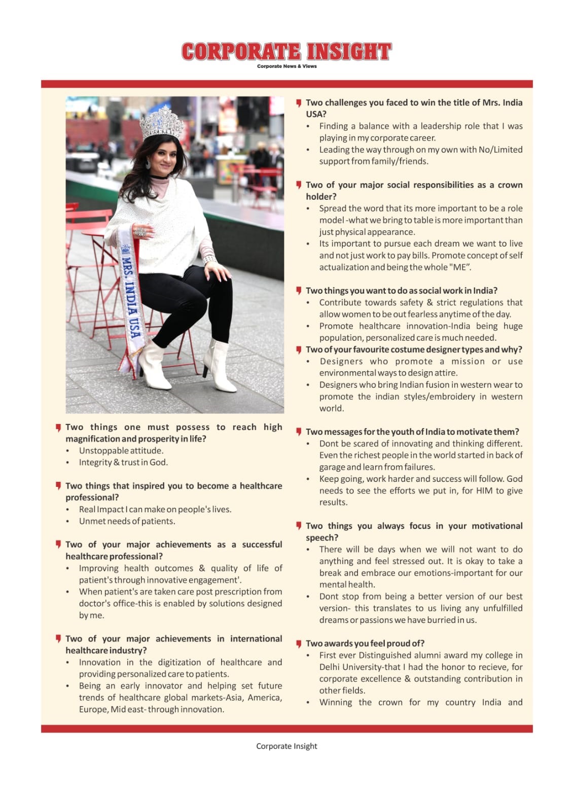 Mrs India USA, Corporate Leader-healthcare, Fitness Coach, Inspirational Speaker, Innovator